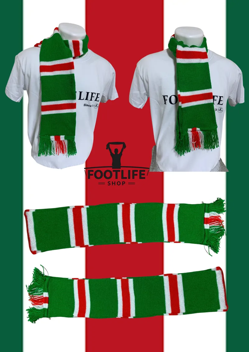 وشاح مولودية (اخضر + احمر + ابيض) اولد سكول بقماش اكريليك 100%